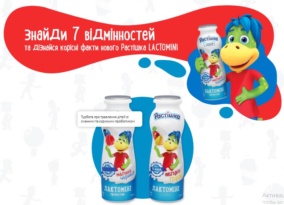 інтерактив, у якому потрібно було відшукати 7 відмінностей та дізнатися цікаве про «Растішка Лактоміні»