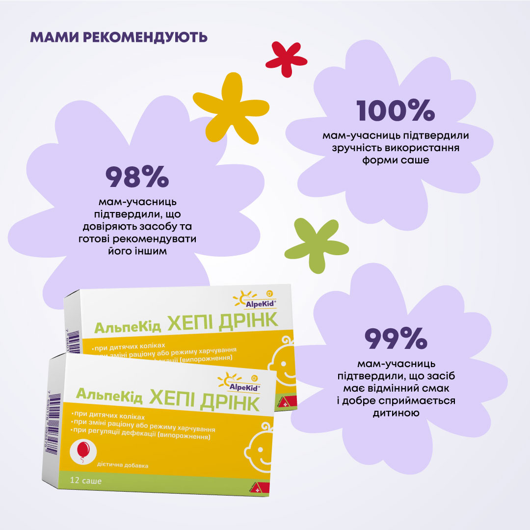 До нас звернувся фармацевтичний виробник Alpen Pharma Group із запитом на створення ефективної кампанії для продукту АльпеКід Хепі Дрінк (Alpekid happy drink). Це дієтична добавка до раціону харчування немовлят на грудному вигодовуванні та дітей раннього віку з метою підтримки нормального функціонування шлунково-кишкового тракту, зокрема при коліках. Пропонується у формі саше на основі ромашки, меліси та фенхелю. Mожна вживати також як напій між прийомами їжі замість чаю.