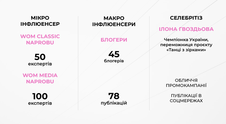 Комплексна кампанія, що поєднала WOM-проєкти Naprobu, співпраця з блогерами та селебрітіз.